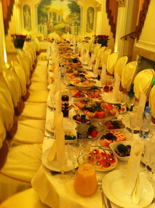 Отметили на днях свадьбу и очень довольны.Красивый чистый ресторан,обслуга русская,блюда вкусные.Отдельное спасибо администратору Александре-она помогла сделать меню разнообразно и сытно,очень профессионально.Свадьбу вели Наталья и Вениамин-весело и энергично,это музыканты ресторана,хорошо поют очень.Мы счастливы,что выбрали именно этот ресторан.5 баллов.